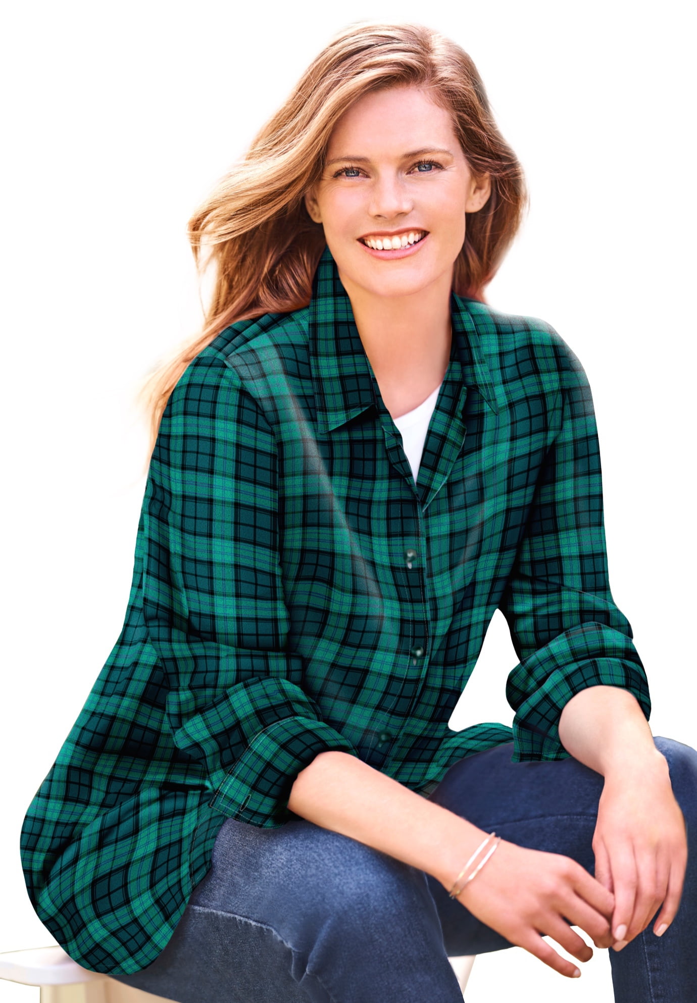 Woman Within Women's Plus Size Classic Flannel Shirt