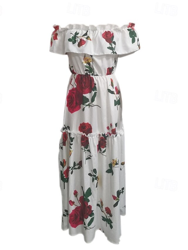 White S Boho Off Shoulder Floral Long Flounce Dress For Wedding