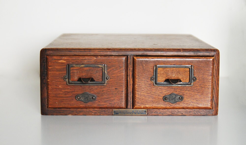 Vintage Wood Library Catalog Drawers Yawman by GrannyPantyDesigns