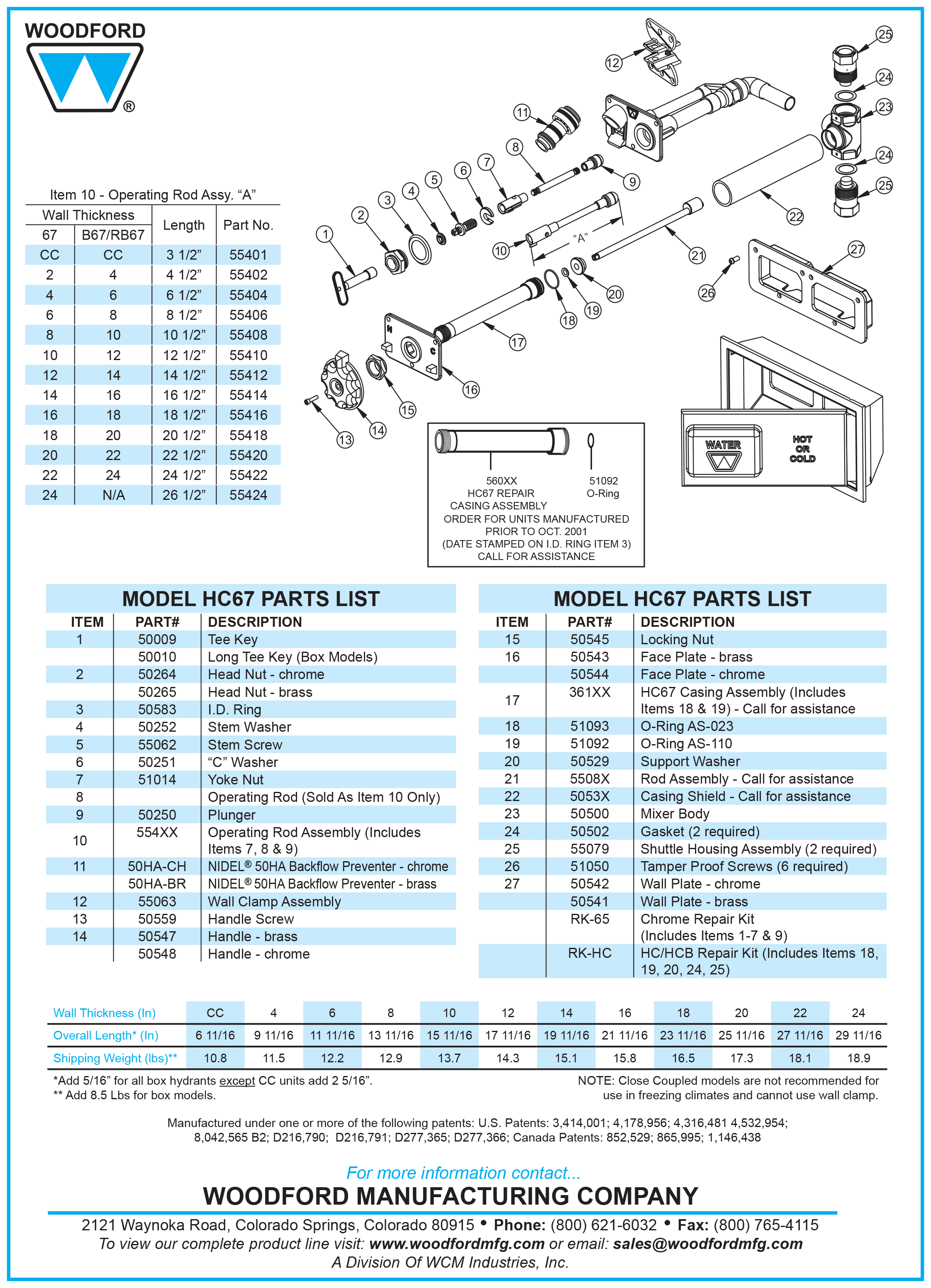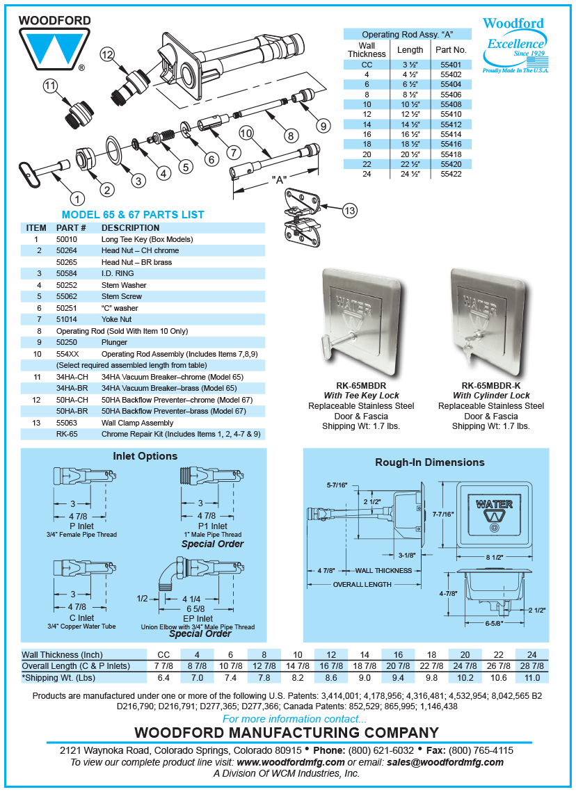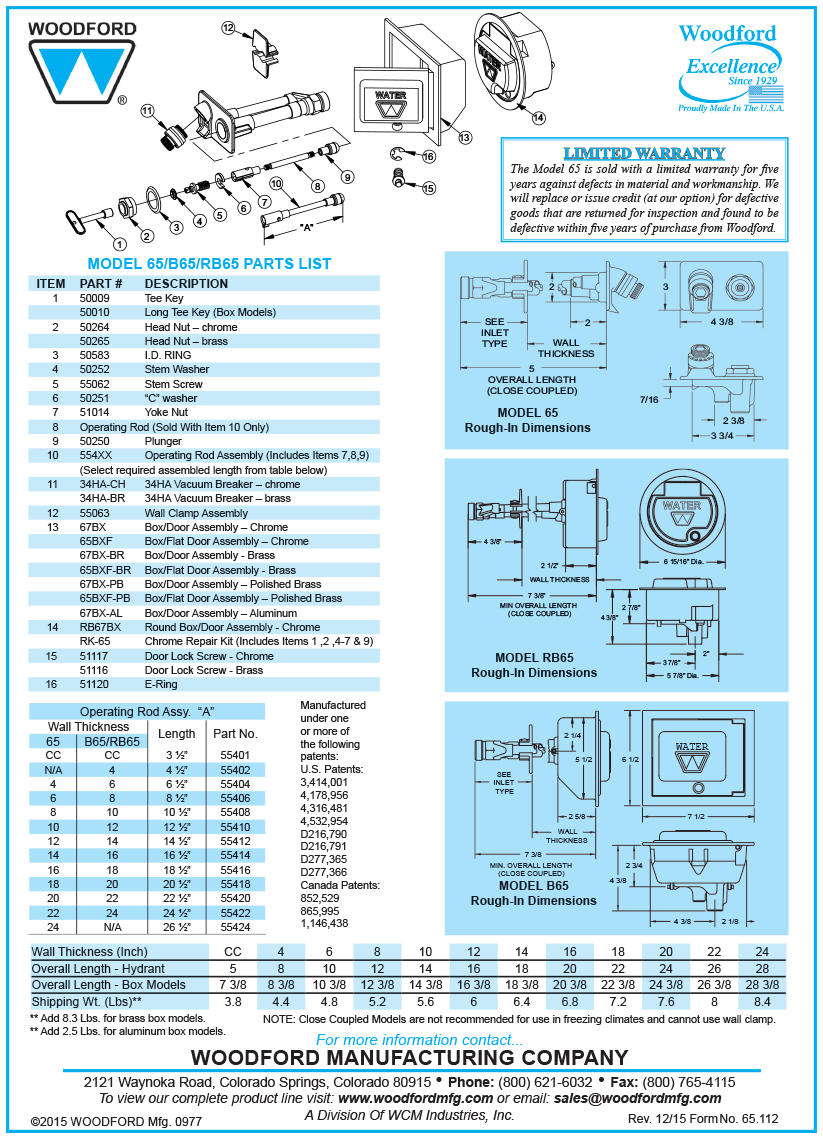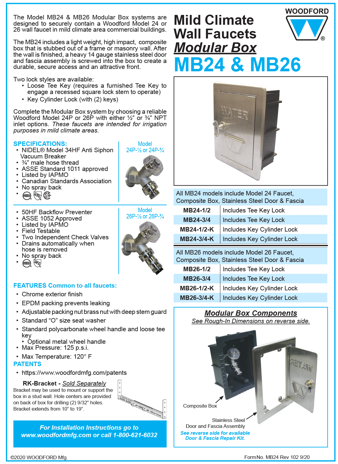 Woodford Model 65, B65, Modular & Round Box Hydrants