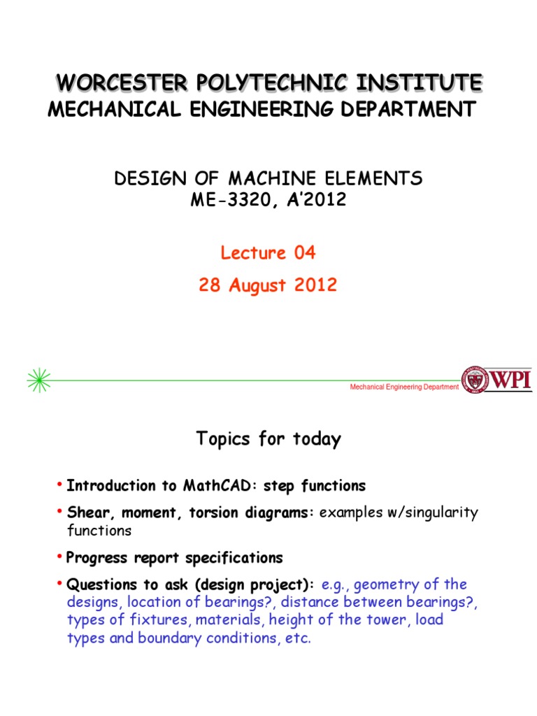 WPI Mechanical Engineering Lecture on Machine Design PDF Shear