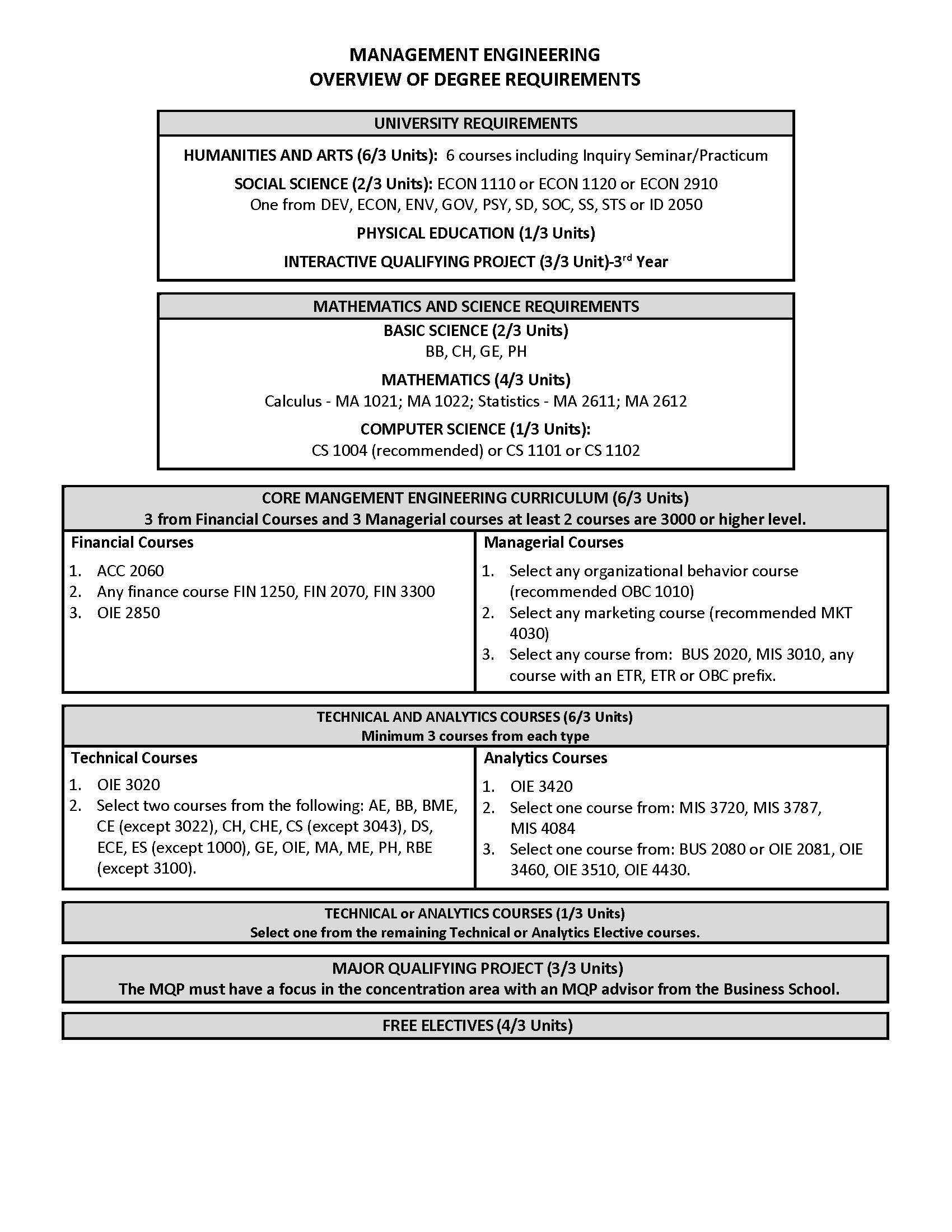 Business Major Worcester Polytechnic Institute Undergraduate Catalog