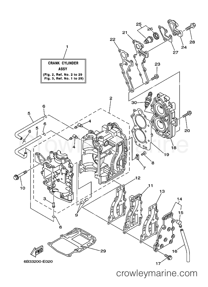 Yamaha Outboard 2016 OEM Parts Diagram for Cylinder Crankcase 1