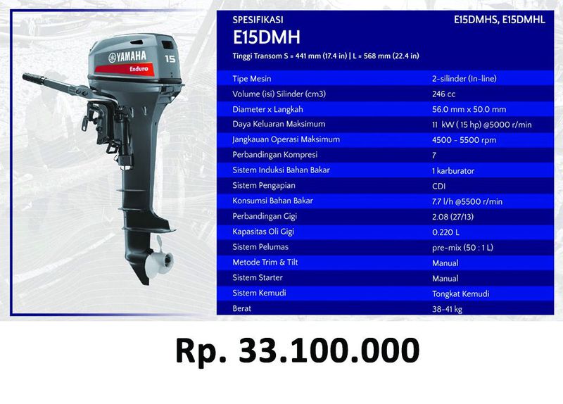 YAMAHA » Mesin Gasoline Enduro Outboard Motor 2 Tak, 15HP YAMAHA