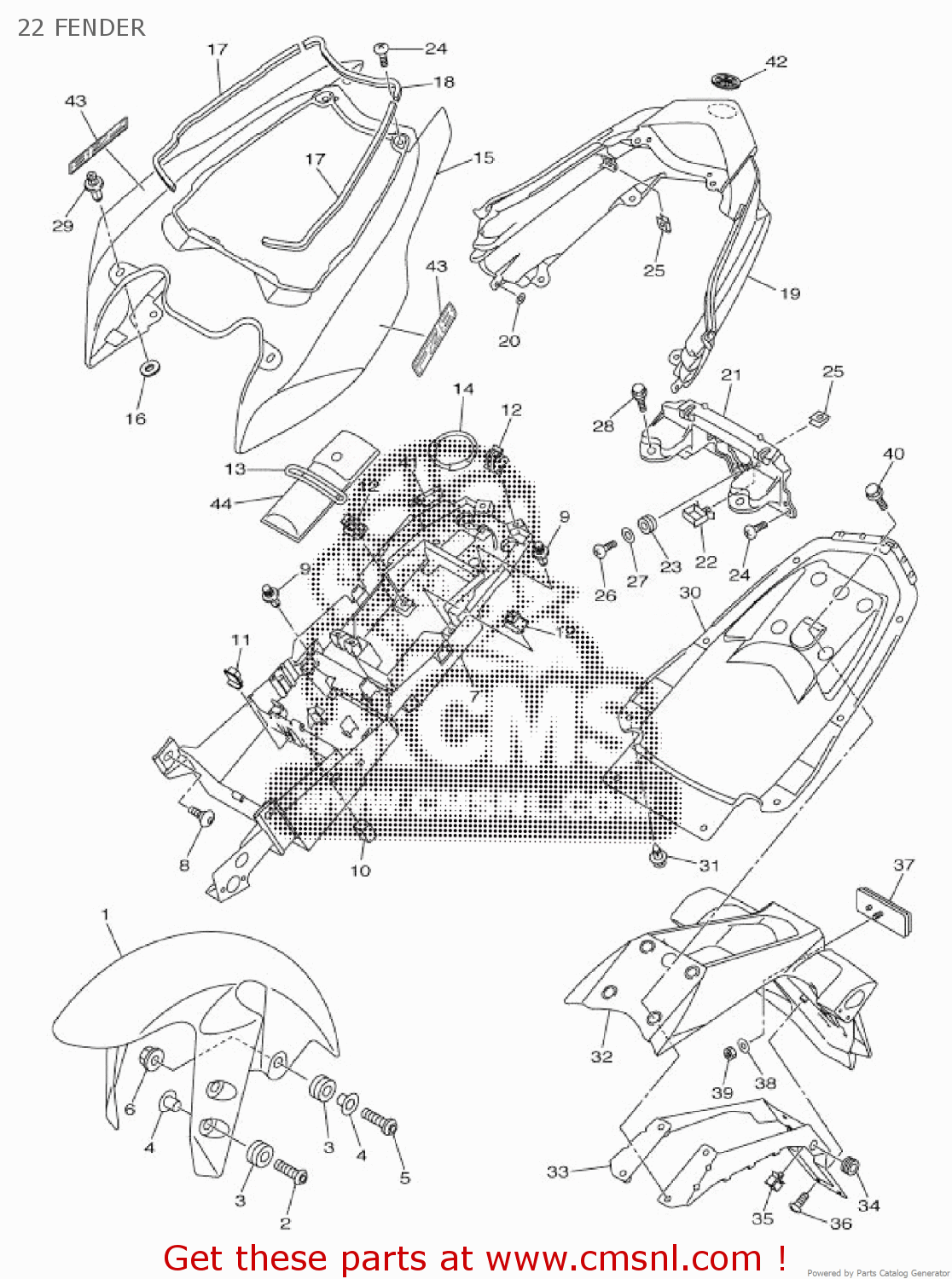 Yamaha Motorcycle 2011 OEM Parts Diagram for Fender