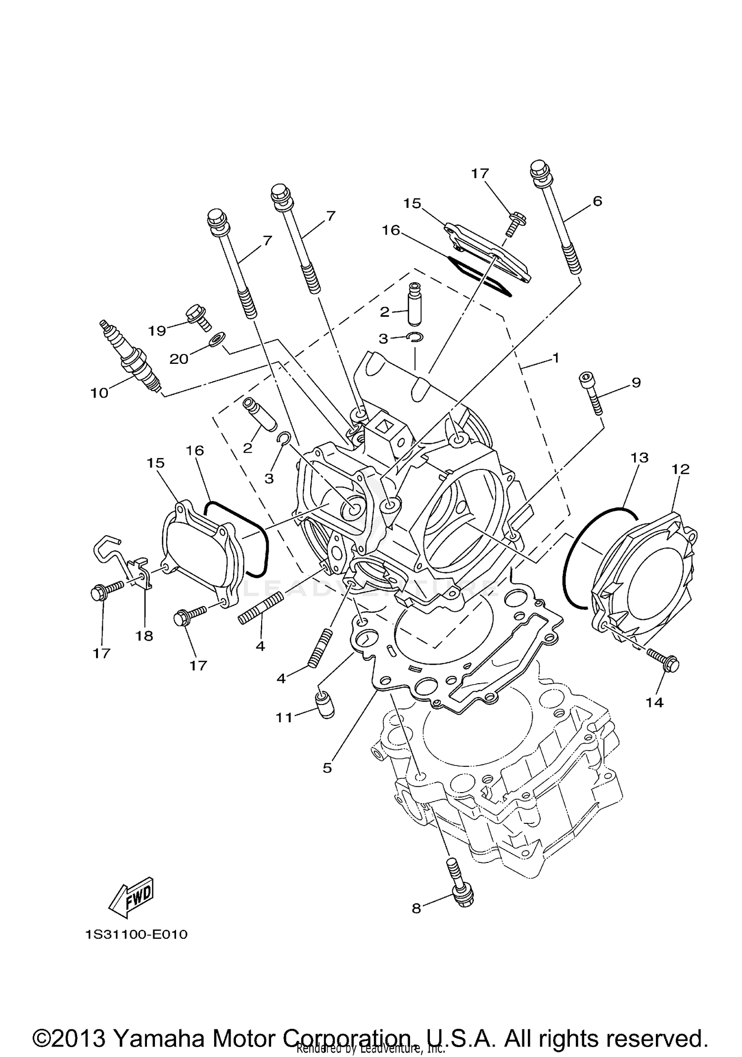Yamaha Motorcycle 2015 OEM Parts Diagram for CYLINDER