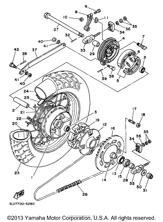 Rear wheel for 2001 Yamaha XV250 XV250 (VIRAGO) USA sales region