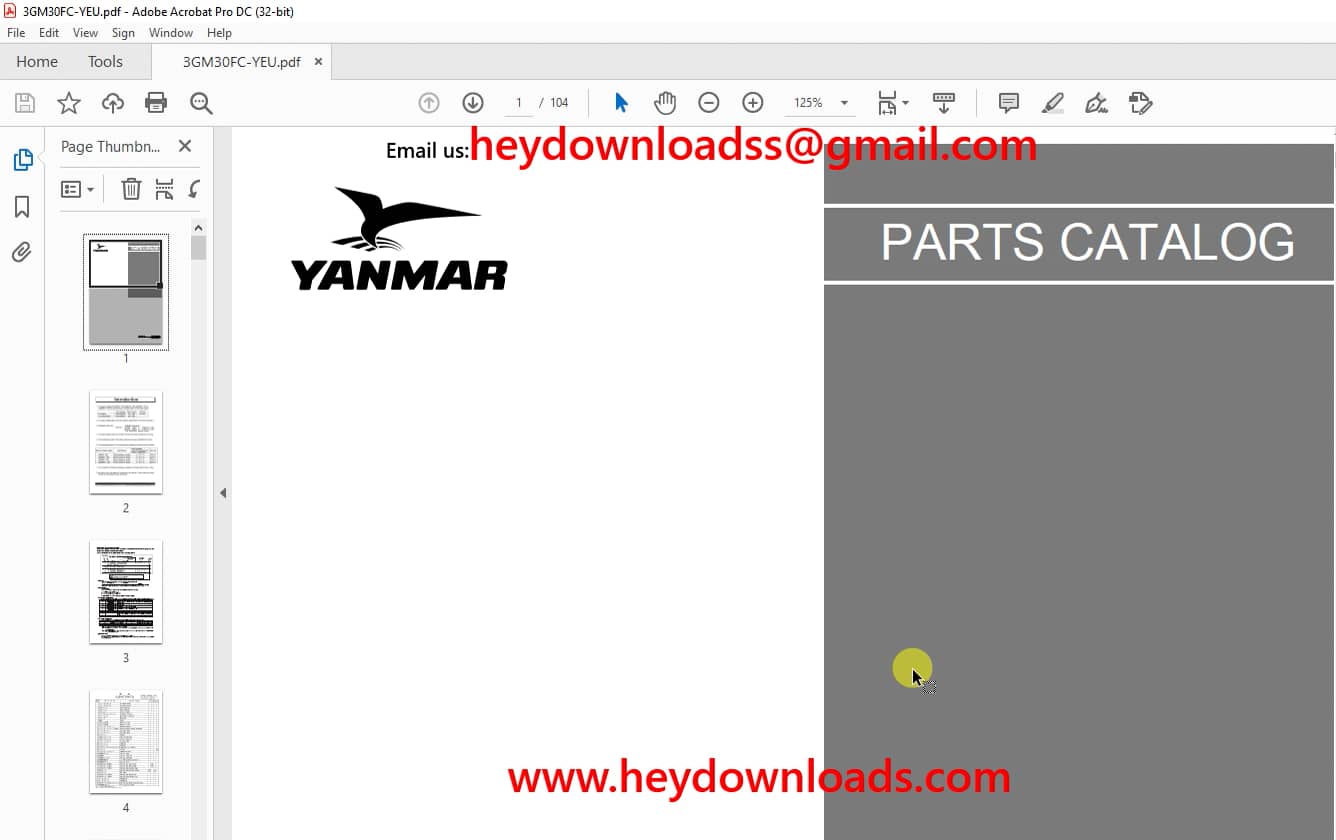 Yanmar 3GM30 3GM30B 3GM30C 3GM30F Diesel Engine Parts Catalog Manual