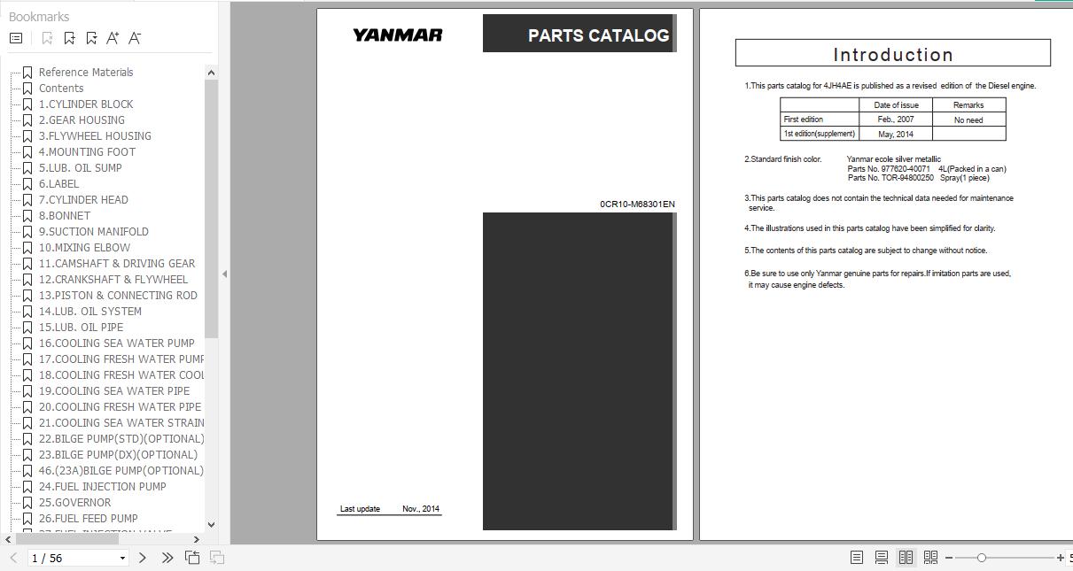 Buy and download Yanmar 4JH4AE Parts Catalog Engine 0CR10M68301