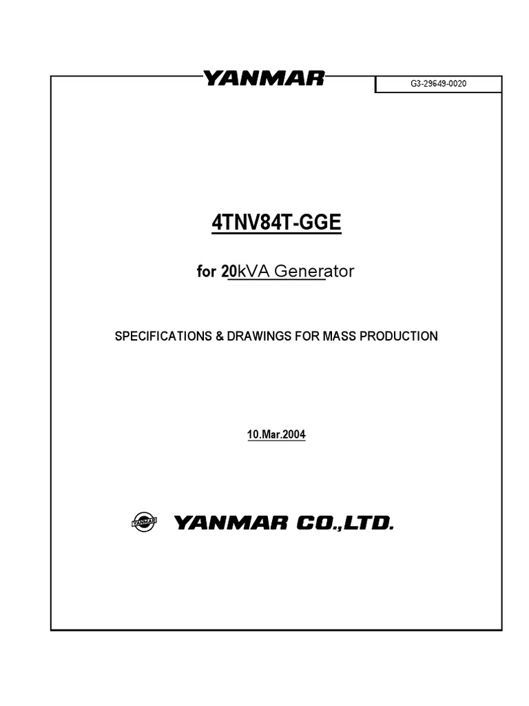 Catalogue Yanmar 4TNV84T GGE PDF Diesel Engine Propulsion