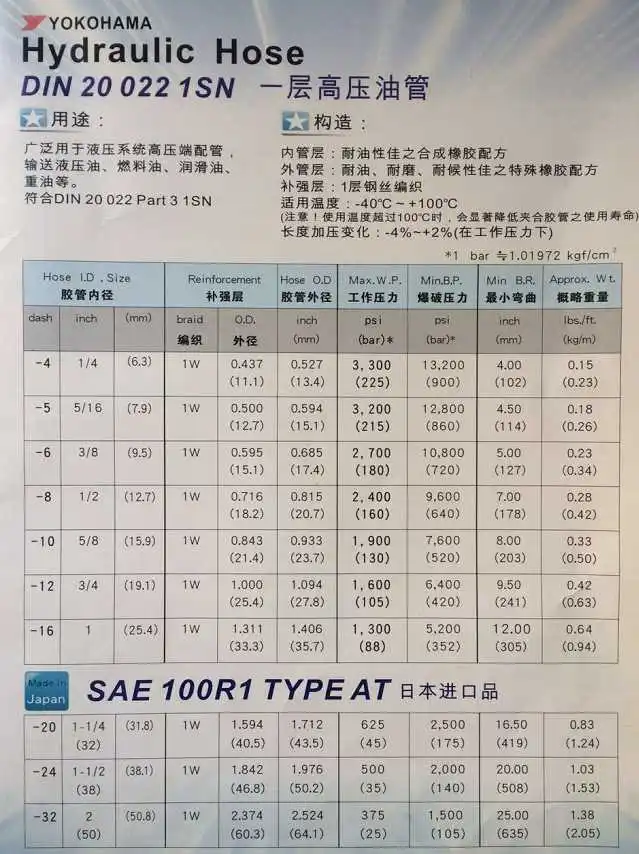 25mm Hydraulic Hose Crimping Portable Yokohama Pipe Catalog Hydraulic