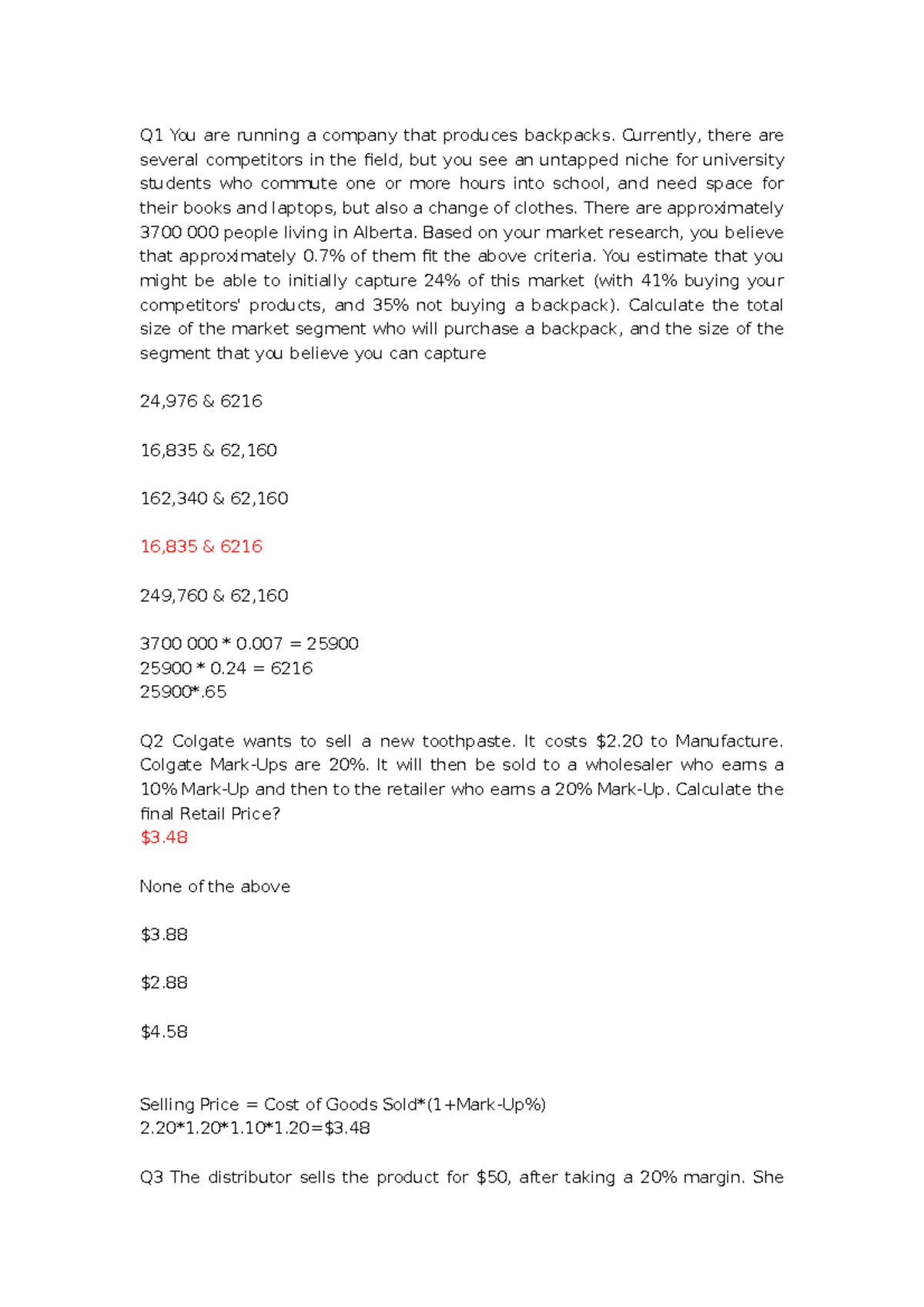 MKT300 Quiz 1 different version Q1 You are running a company that