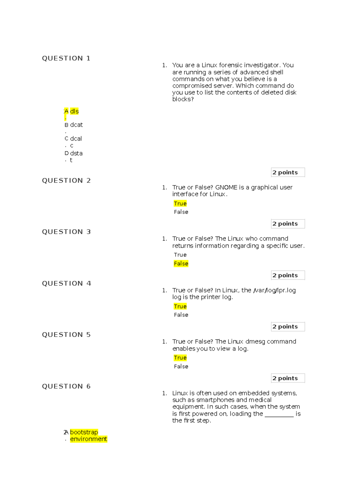 Week 5 quiz Q U E S T I O N 1 1. You are a Linux forensic