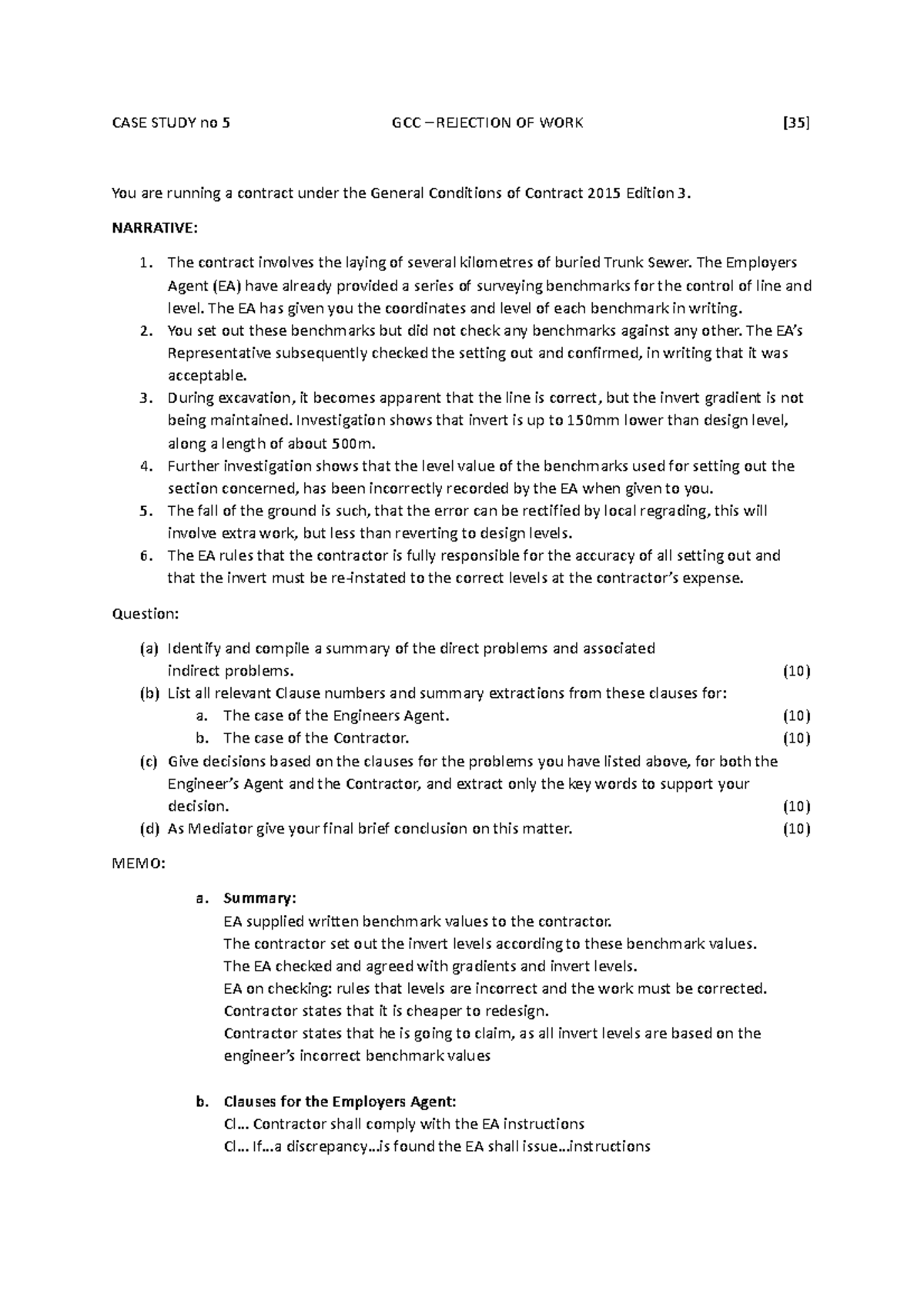 5.1 CASE Study memo no 5GCC CASE STUDY no 5 GCC REJECTION OF WORK