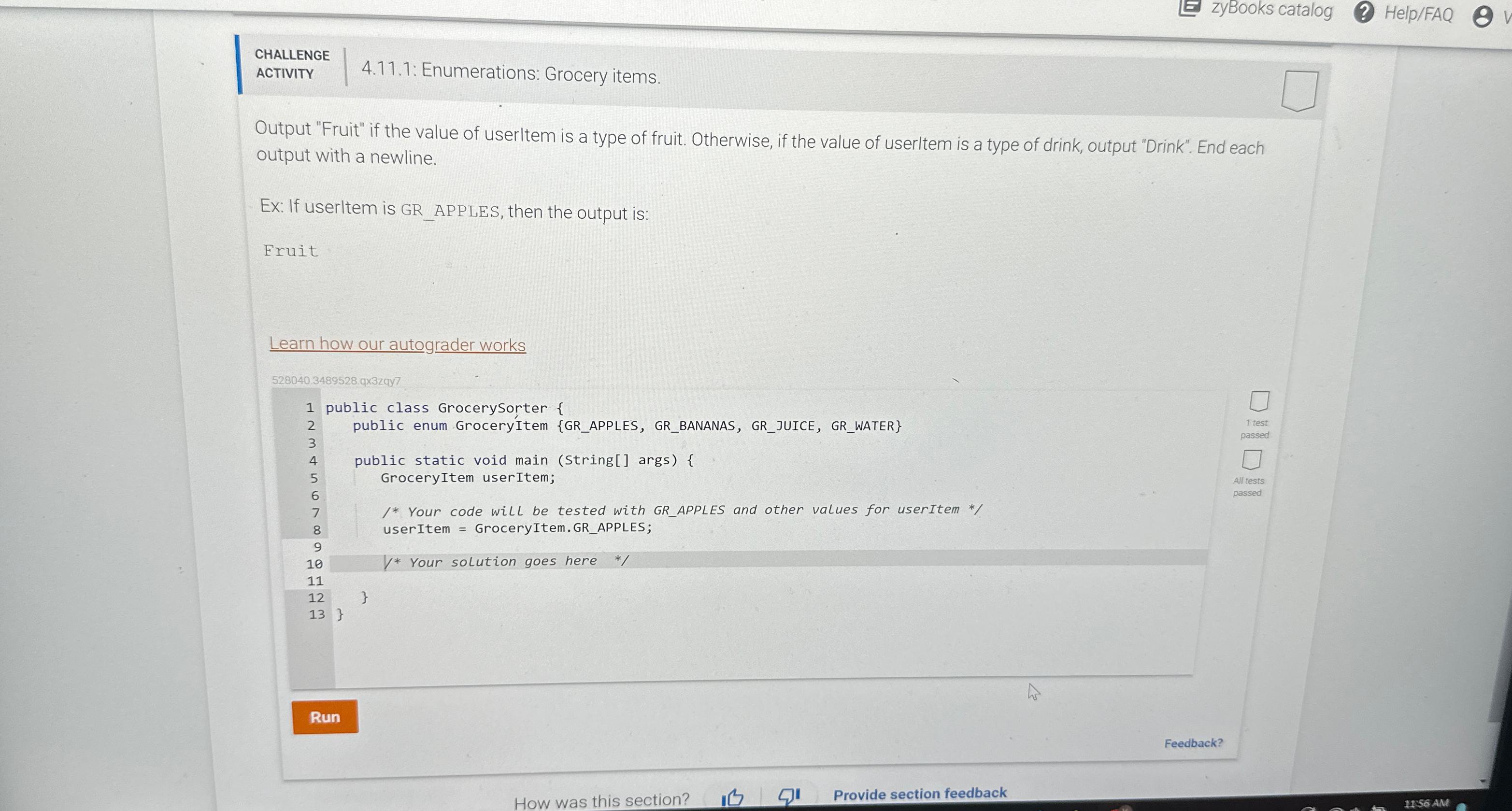 Solved zyBooks catalog(?) Help/FAQCHALLENGEACTIVITY4.11.1