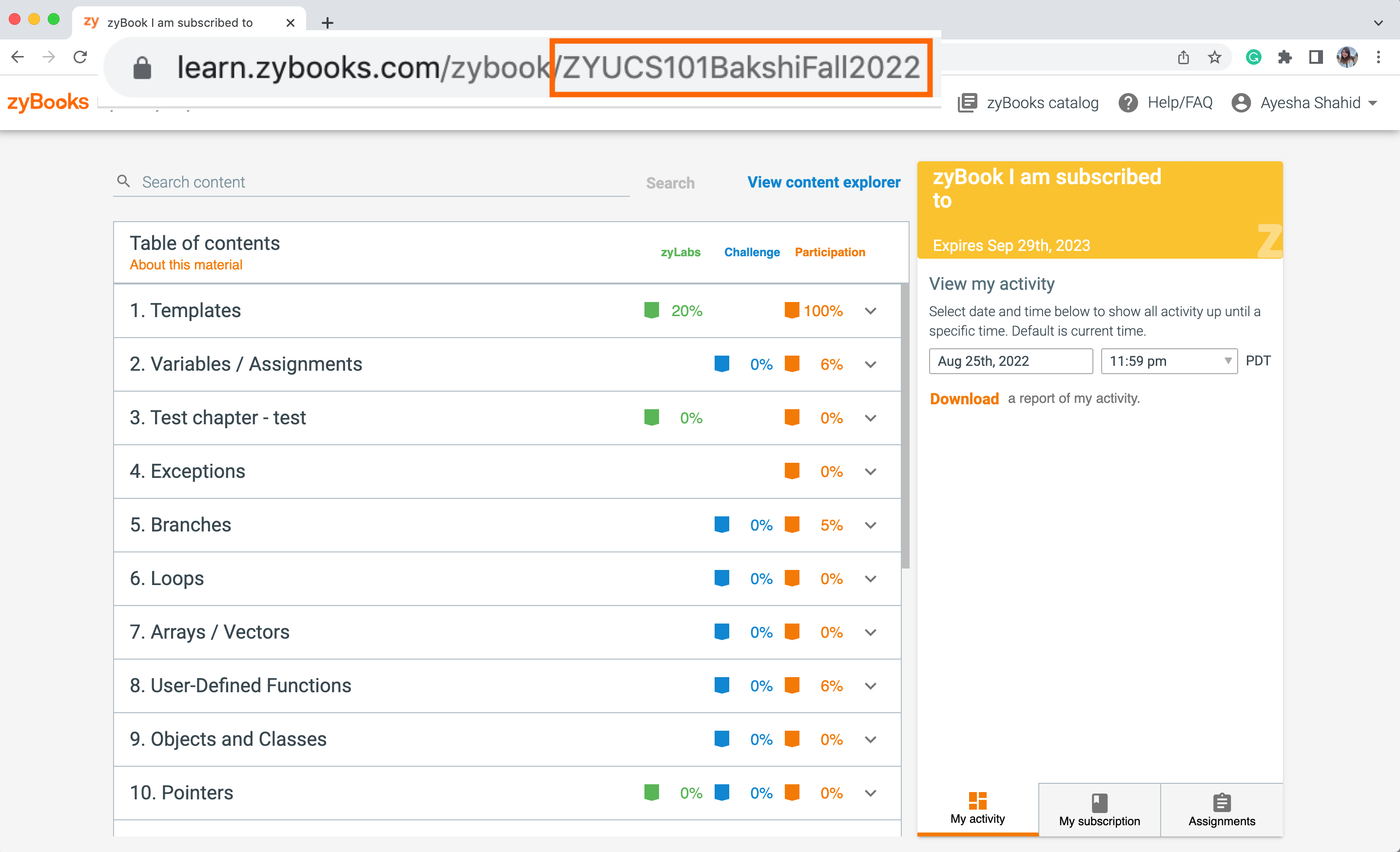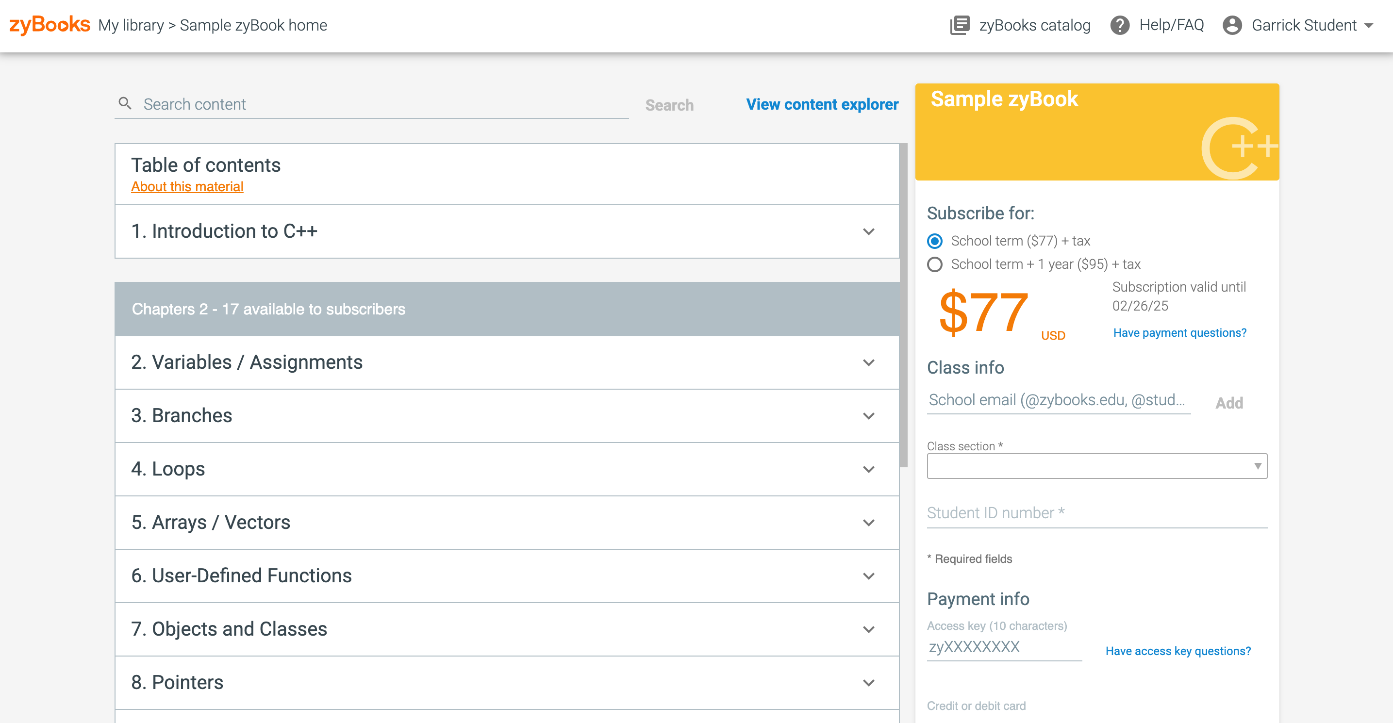 Extending a subscription for personal use. zyBooks Help center